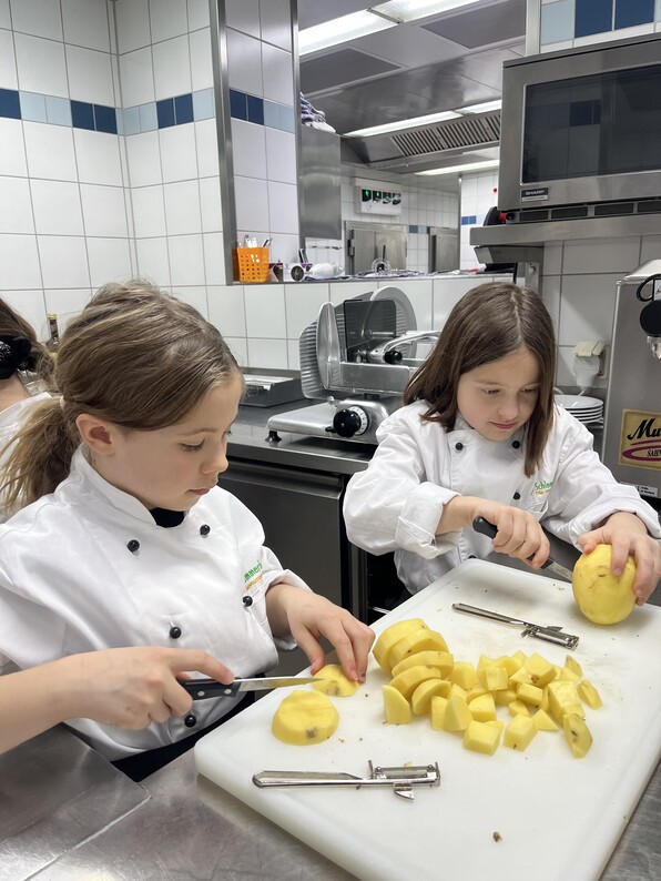 Am Freitag, 30.01.2026, traf sich die Schlemmerbande im Hotel Fuchsen in Kirchheim/ Teck zum ersten Kochevent der diesjährigen Kochgruppe. Zuerst wurden den Miniköchen die Küchengeräte erklärt. Die Kinder stellten dazu viele Fragen und waren sehr begeistert. Anschließend ging es an die Zubereitung. In Gruppen wurde fleißig geschält, geschnitten und vorbereitet. Im Anschluss durften die Kinder das fertige Menü genießen: Kartoffel-Gnocchi mit Mandel-Spinat-Pesto sowie Kopfsalat mit Apfel und Walnüssen. Zum krönenden Abschluss gab es als Nachtisch ein Eis. Ein rundum gelungener Einstieg für die neuen Schlemmerbande-Kids.