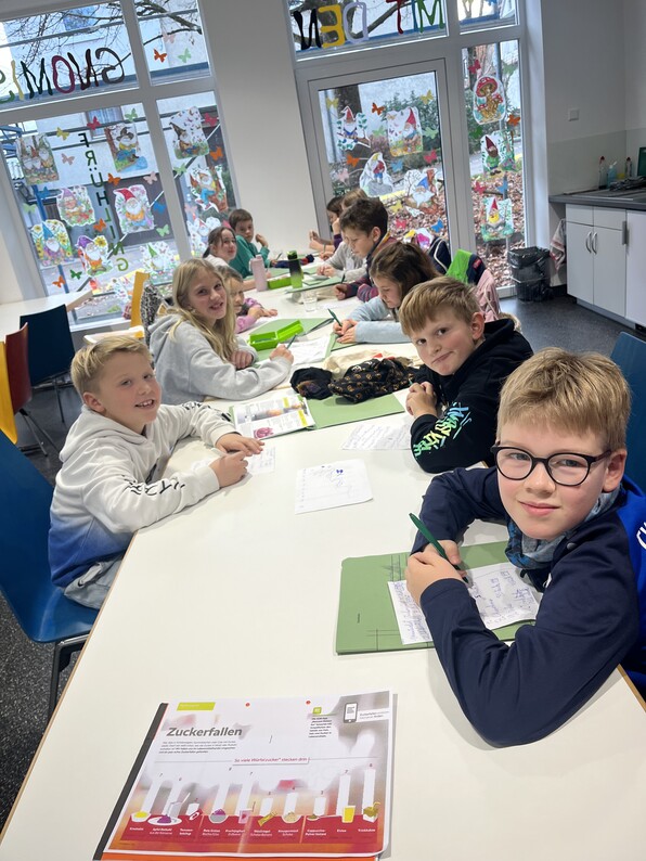 Am Freitag, 21.11.2025 traf sich die Schlemmerbande Rechberghausen für den theoretischen Teil des aktuellen Kochprojekts. Auf dem Programm standen ein weiteres Kennenlernspiel, das gemeinsame Besprechen der Hausaufgabe zur Ernährungspyramide, das Thema Zucker, sowie zur Wiederholung die wichtigsten Hygieneregeln in der Küche. Besonders spannend war der Programmpunkt rund um den Zuckergehalt verschiedener Lebensmittel. Die Kinder durften zunächst schätzen, wie viele Zuckerwürfel sich in alltäglichen Produkten verstecken. Anschließend folgte die überraschende Auflösung. Die staunenden Gesichter und die Begeisterung der Kinder sprachen für sich. Das Ratespiel war ein voller Erfolg, und viele wollten es am liebsten sofort wiederholen. Insgesamt war es ein abwechslungsreicher und spannender Nachmittag, der spielerisch Wissen vermittelte und Lust auf mehr machte. Im Januar geht es dann weiter zum ersten Gastronomen, wo die Schlemmerbande einen Einblick in die Profiküche erhalten wird.